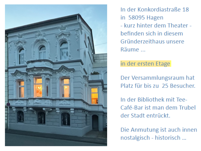 Unser Domizil: Konkordiastr. 18, 58095 Hagen (hinter dem Theater)